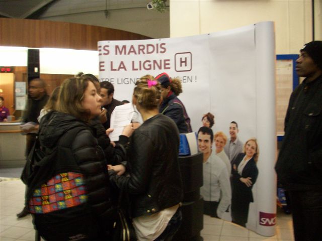 Mardi dernier, nous étions présents de 07h30 à 09h30 en gare de Monsoult Maffliers, Pontoise et Epinay Villetaneuse dans le cadre de la réalisation des Mardis de la ligne H. L’objectif de ces rencontres étaient d’échanger avec vous sur vos priorités et vos attentes sur le thème de « l’Information Voyageurs ».