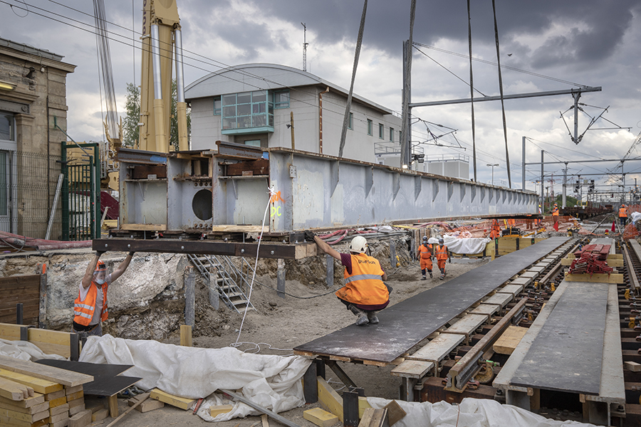 Ce sont 40 mètres de voies qui ont été provisoirement remplacées par un pont ferroviaire, ce pont restera installé le temps du creusement du souterrain.