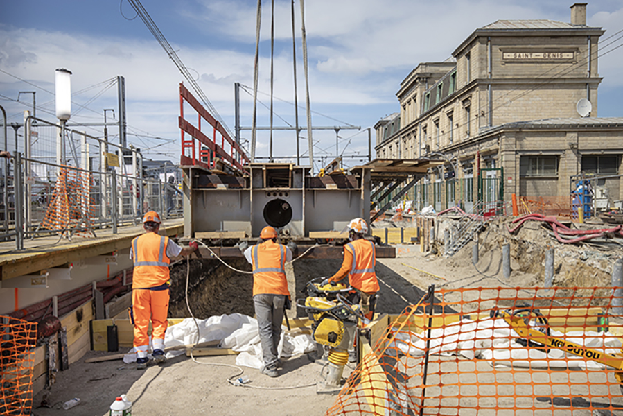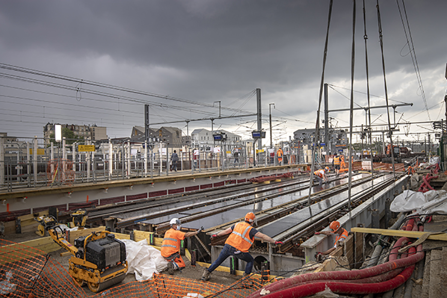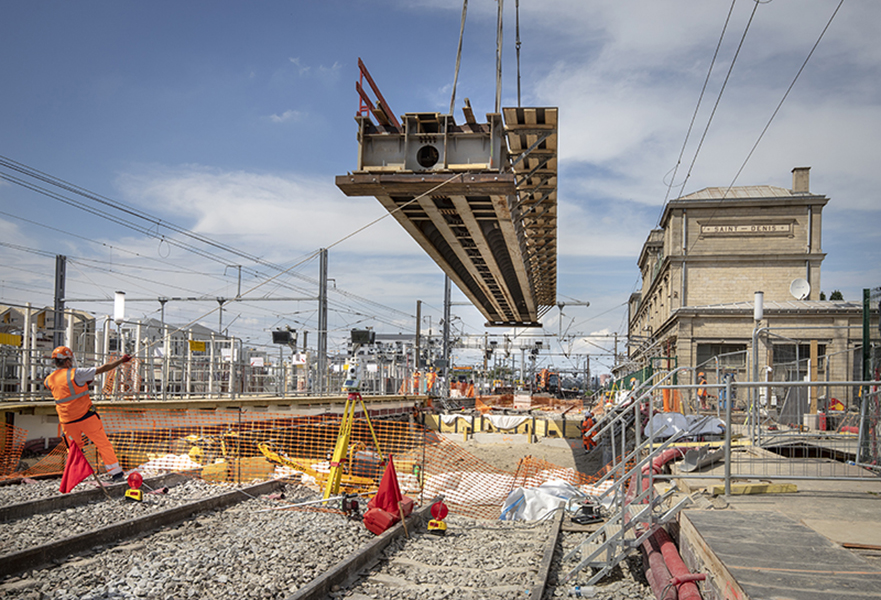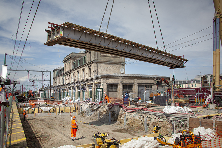 Le week-end dernier, du 16 au 17 mai 2020, plus de 100 compagnons ont travaillé jour et nuit pour installer un pont provisoire sur la voie du RER D en provenance de Paris.